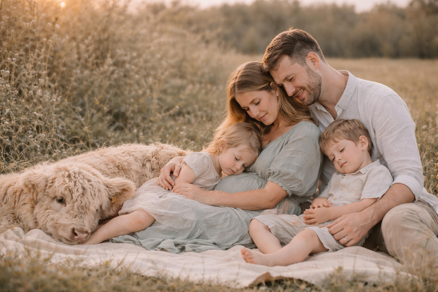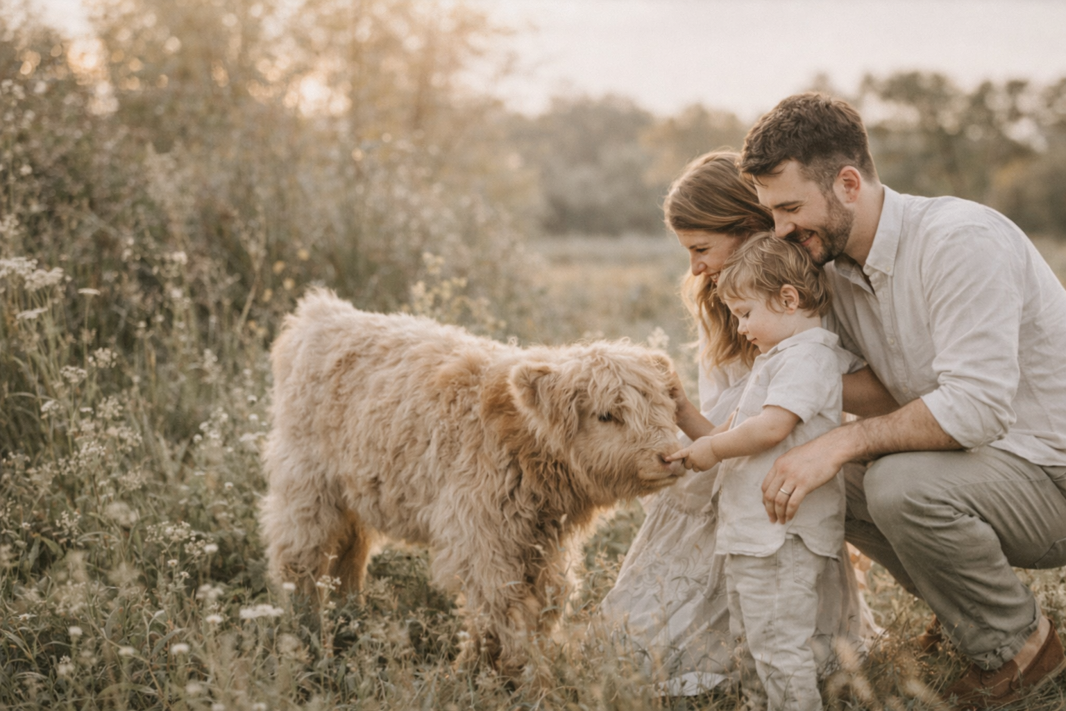 Our signature countryside release, built around a guided Mini Highland calf experience for families and maternity clients.